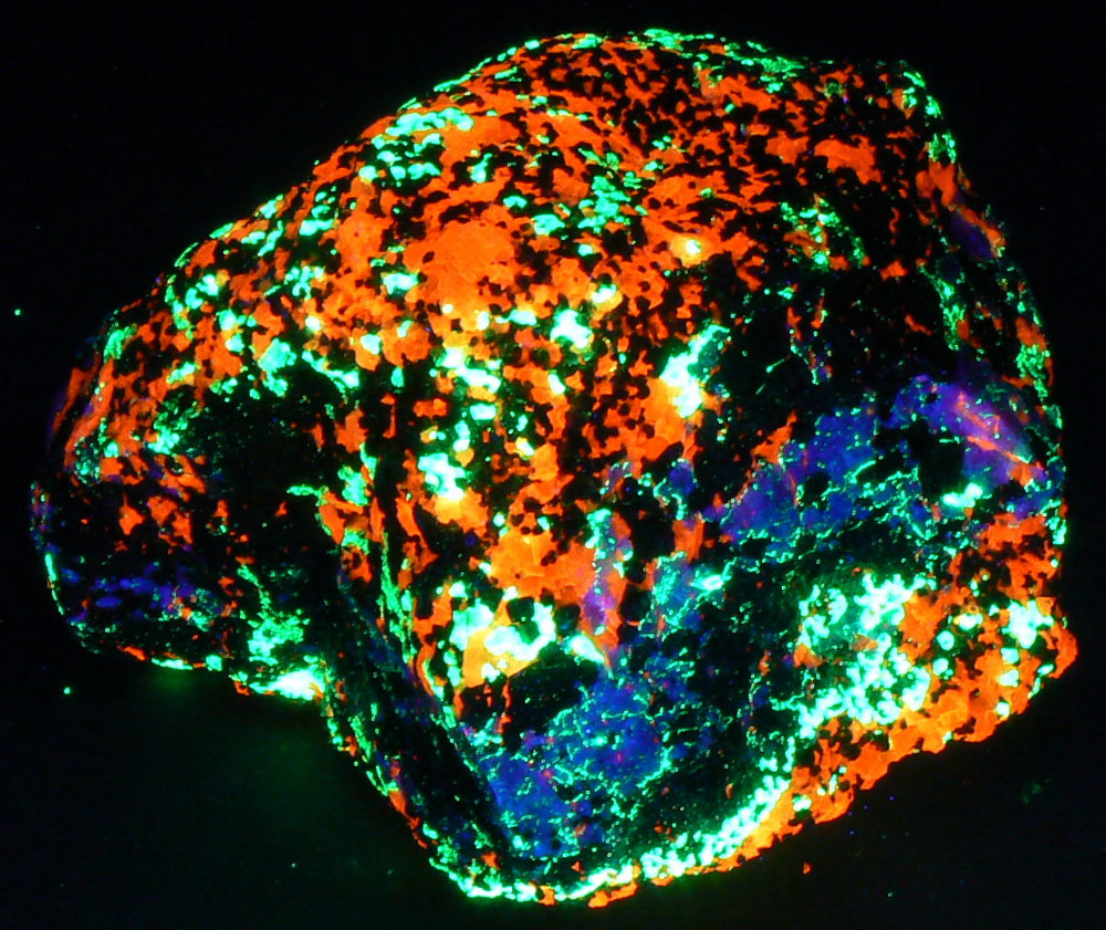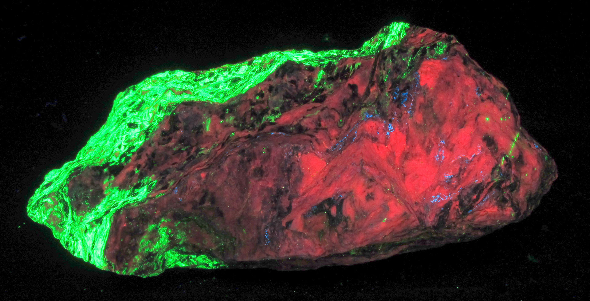 The Franklin and Sterling Hill mining districts in New Jersey are renowned for their exceptional mineral specimens, particularly those exhibiting vibrant fluorescence. These deposits have yielded over 300 distinct mineral species, many of which are unique to the area. Among the most notable minerals are franklinite, willemite, and zincite. Franklinite, a black oxide mineral, serves as the ore from which zinc is extracted. Willemite, typically green, and zincite, red, are both fluorescent under ultraviolet light, making them highly prized among collectors. Other significant minerals from the region include sphalerite, calcite, and hardystonite, the latter of which fluoresces blue under shortwave UV light. The Franklin Mineral Museum houses an extensive collection of these specimens, offering a unique opportunity to observe the area’s geological diversity and the captivating fluorescence of its minerals.