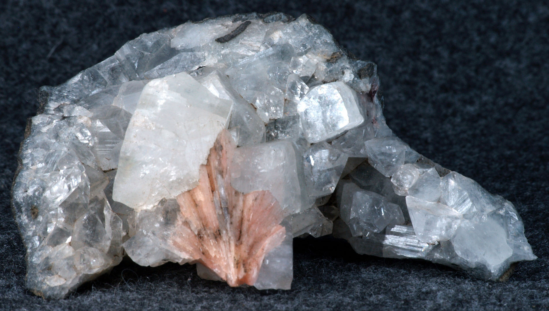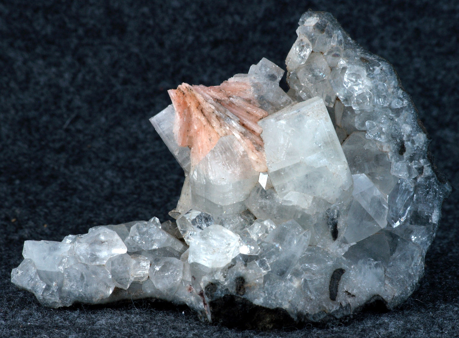 Flesh-colored Heulandite spray on sparkly Apophyllite...