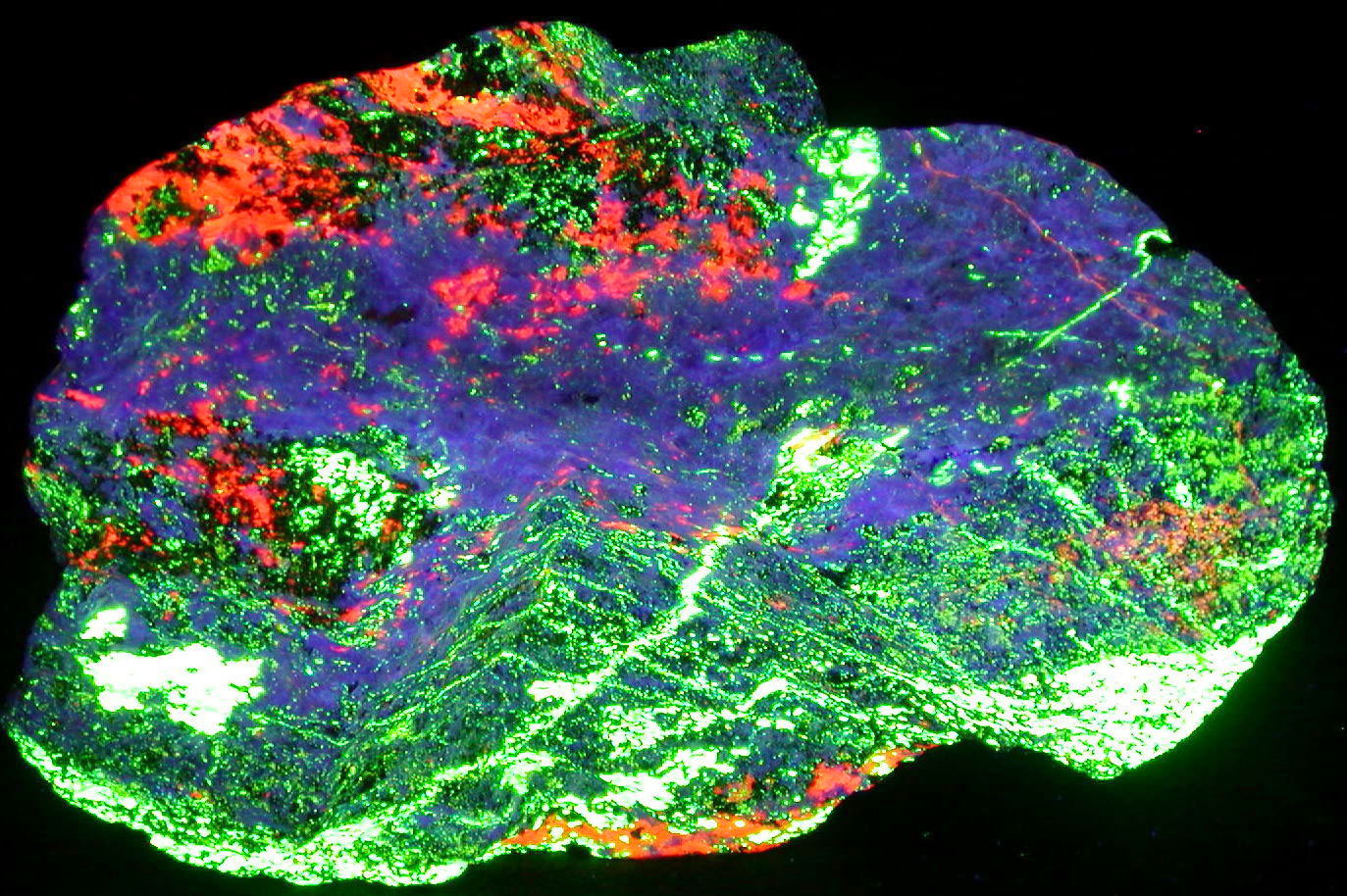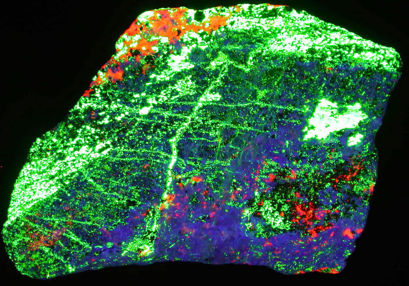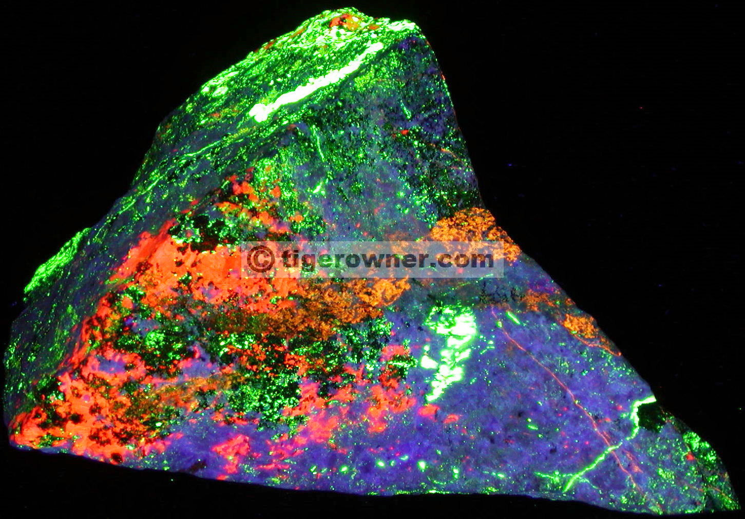 - Description: An exceptional huge 4-color Hardystonite specimen, with enough Clinohedrite, Willemite, and Calcite to make it sizzle - a centerpiece for any fluorescent display