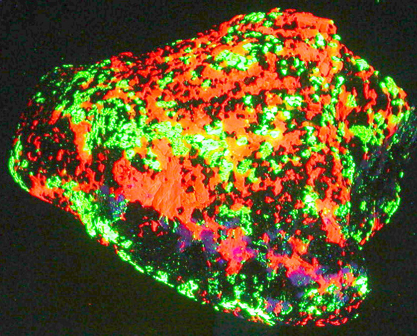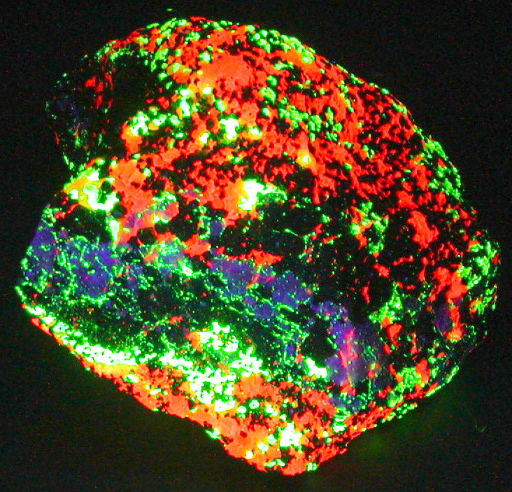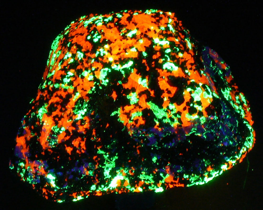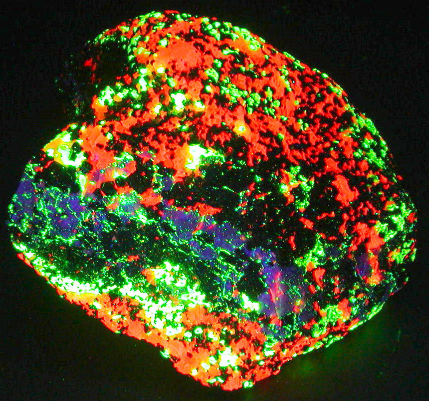 - Minerals Present: Calcite, Hardystonite, Willemite (fl-SW), Franklinite