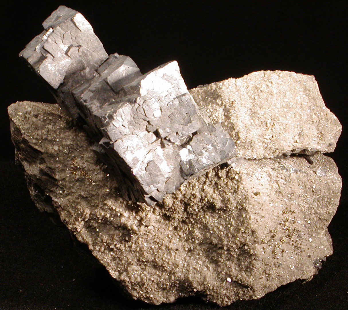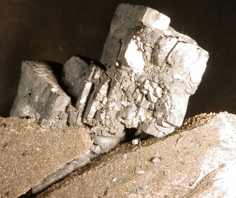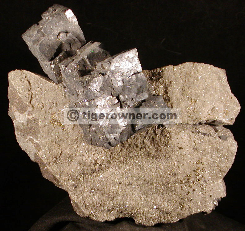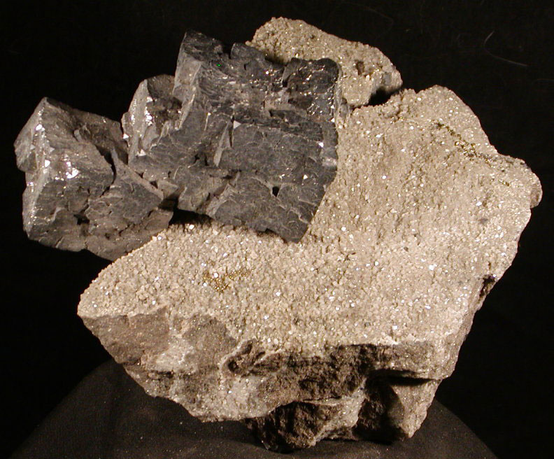 • Description: An unusual and attractive large Galena crystal cluster, with unique growth into a crevice "soldering" two pieces of matrix together