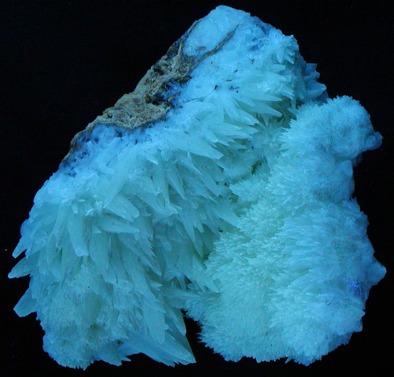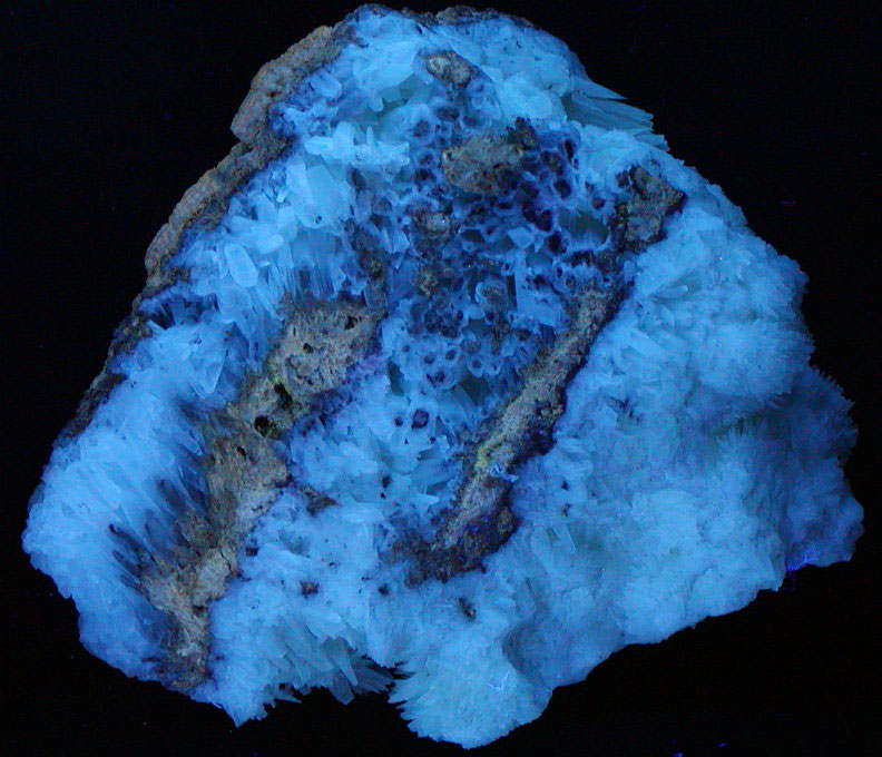 Spectacular under white light or any UV wavelength, the crystals are sharp and mostly undamaged...
