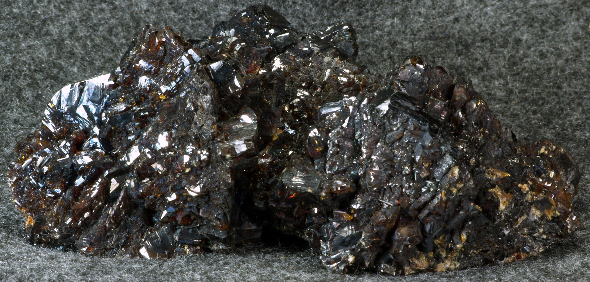 A triangular chunk of "Amber-Jack" Sphalerite xls., artfully arranged in 3 mounds...