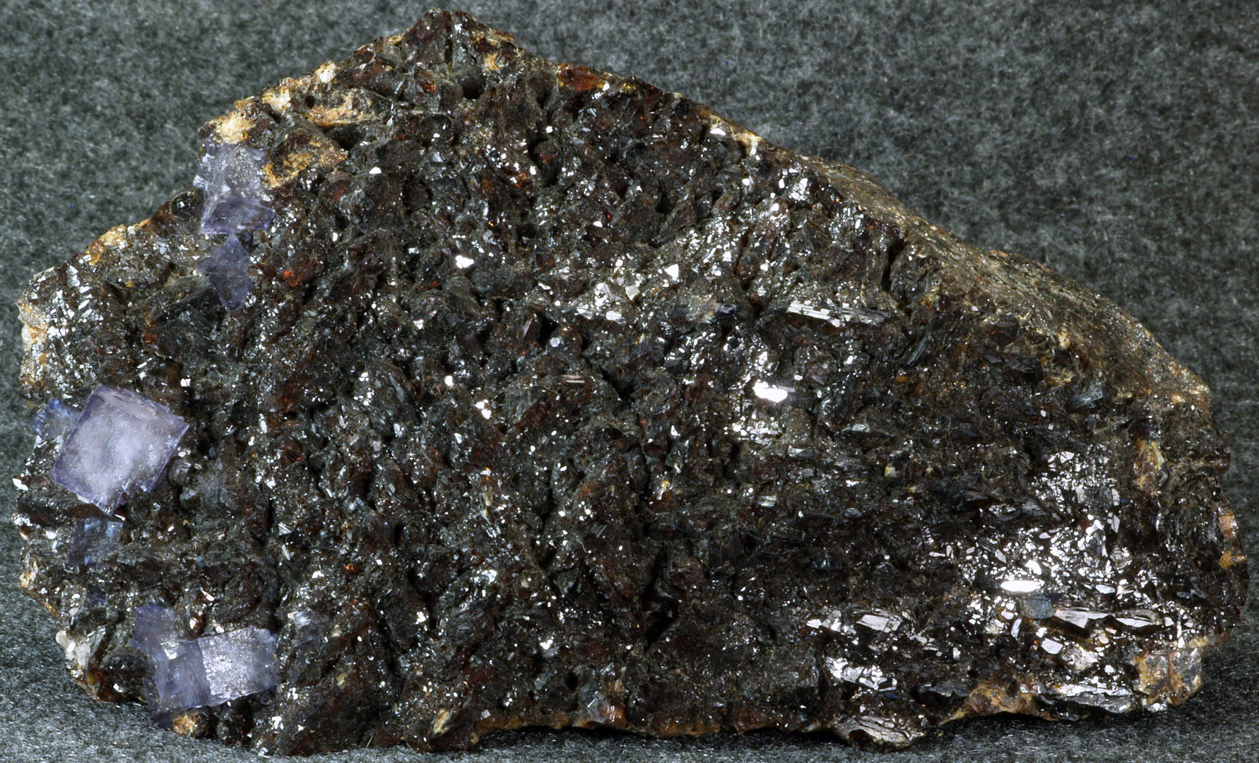 • Description: Nice group of lavender Fluorites on a massive cluster of sparkling Sphalerite xls. - sits up well as shown...