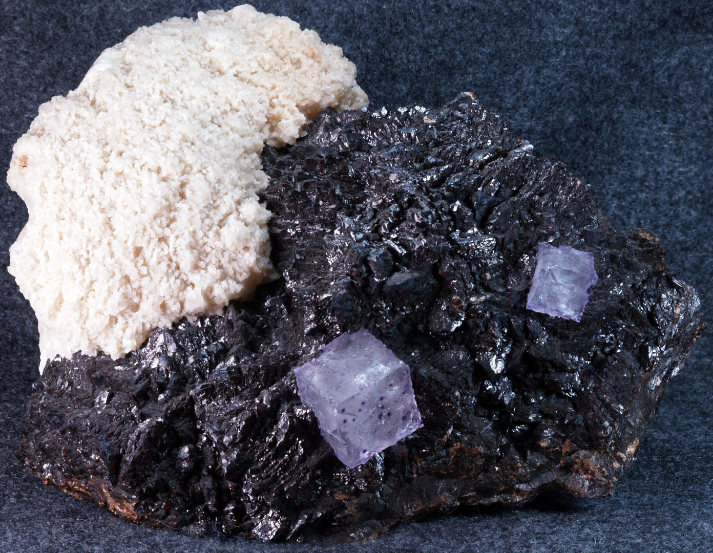 - Minerals Present: Barite, Fluorite xls. on Sphalerite