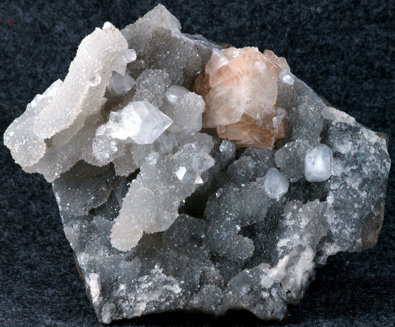 - Minerals Present: Apophyllite, Calcite on Drusy Chalcedony