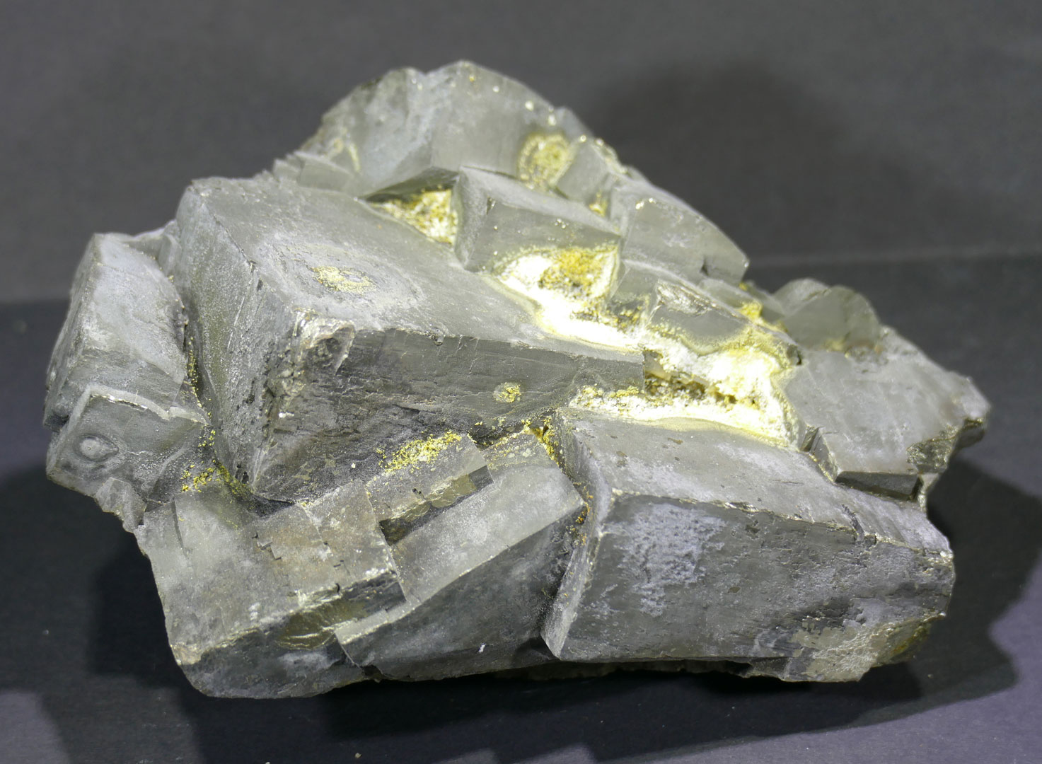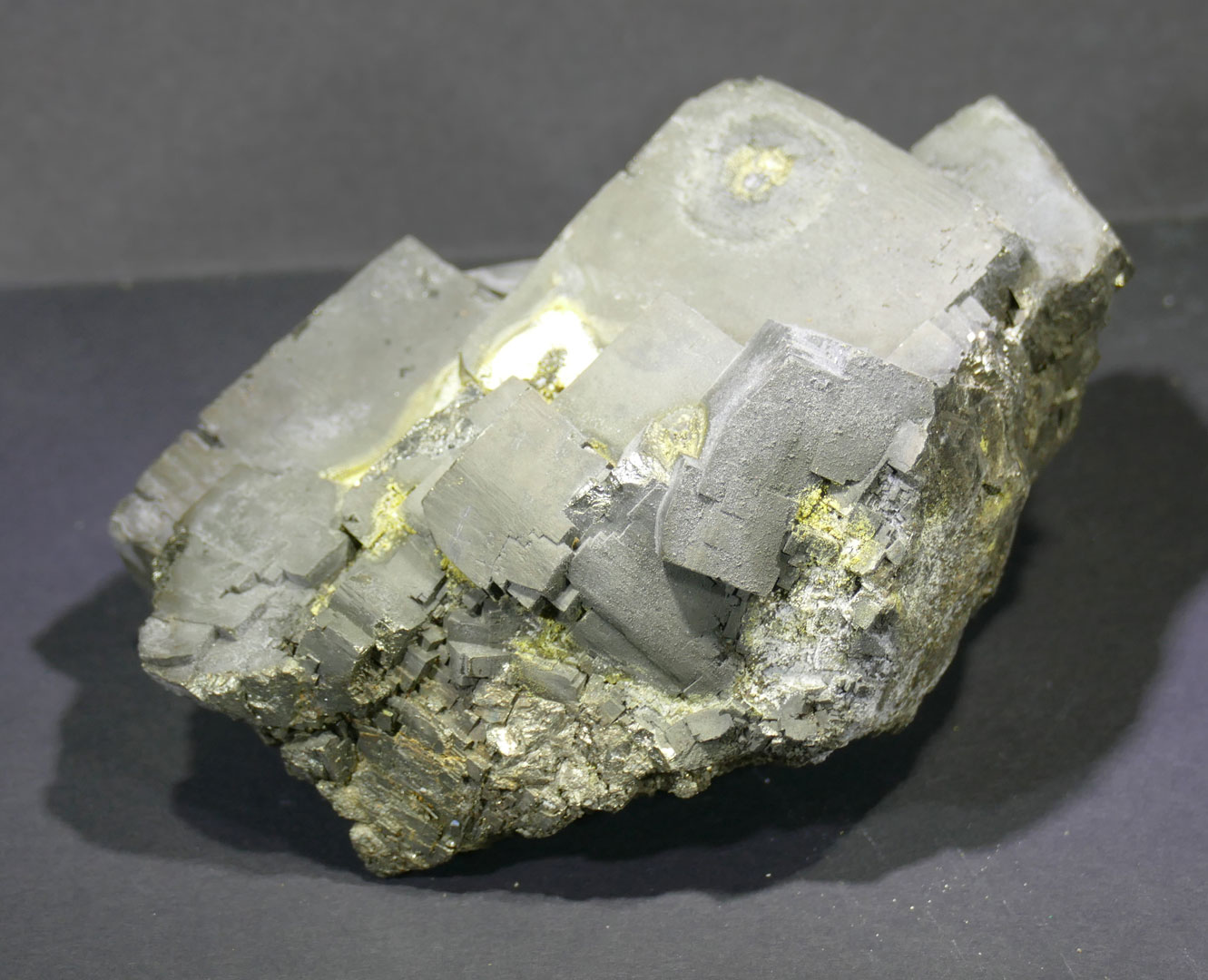 • Description: Very unusual Pyrite cluster - partial cubes to 2 in., coated with an unknown grey material...