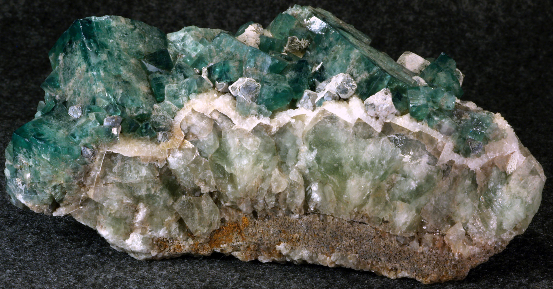 - Description: Galena octahedrons and a 2-generation Quartz druse set off the Fluorite in this striking specimen...