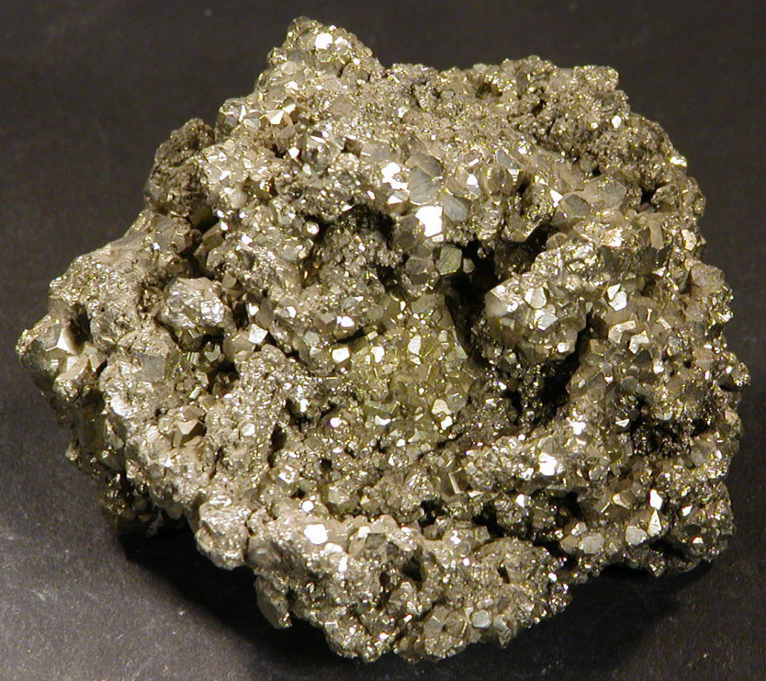 A glittering, intricate mass of shiny Pyritohedrons and cubes