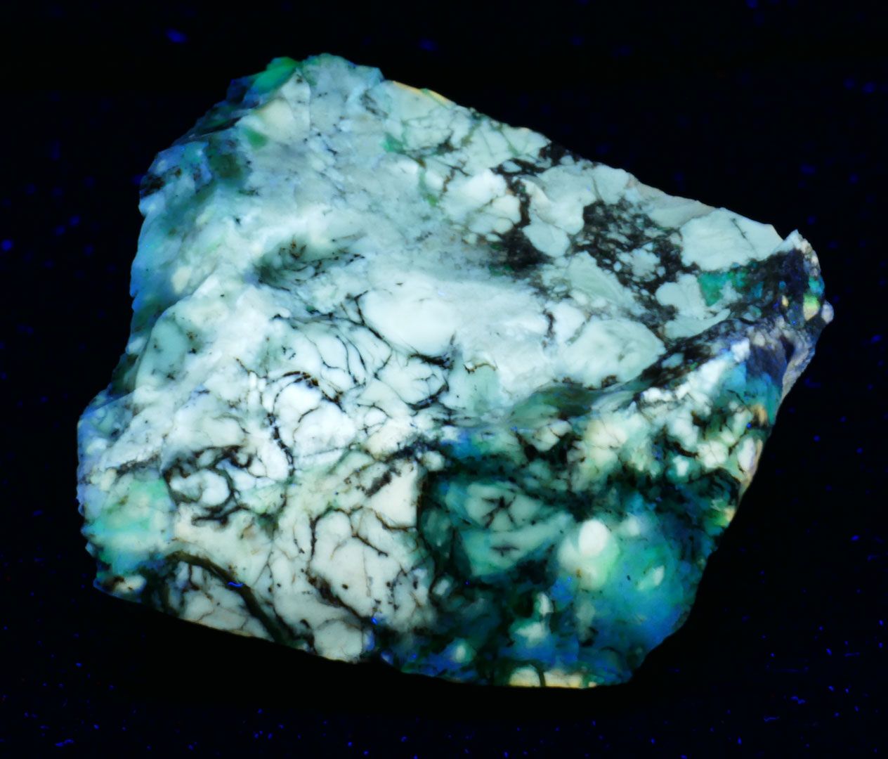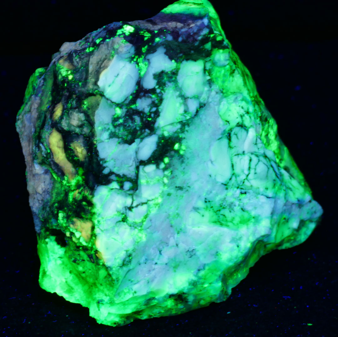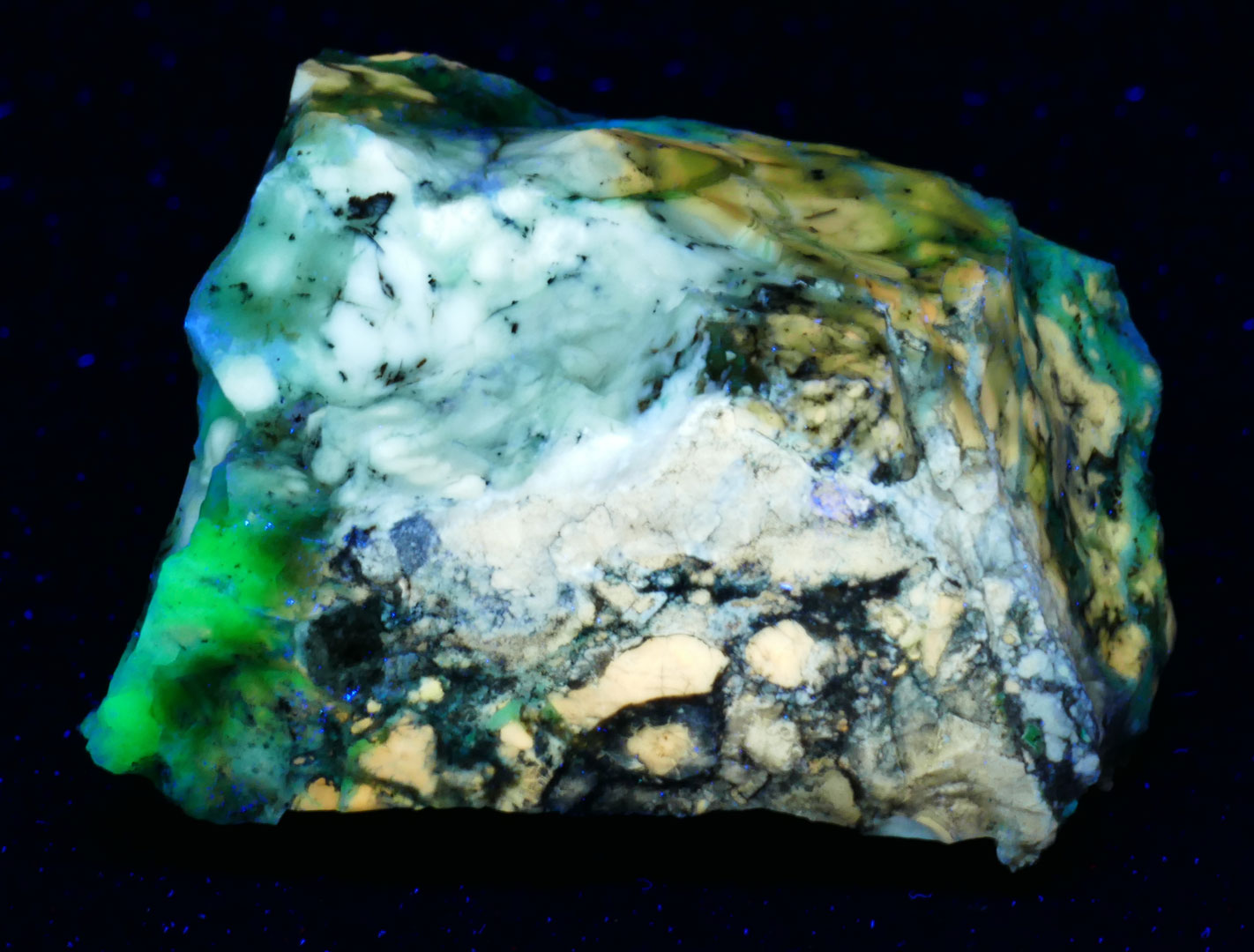 - Description: Here's an unusual fluorescent, attractive in both LW (shown) and SW UV - various pastel colors in LW, more green & light gray in SW...