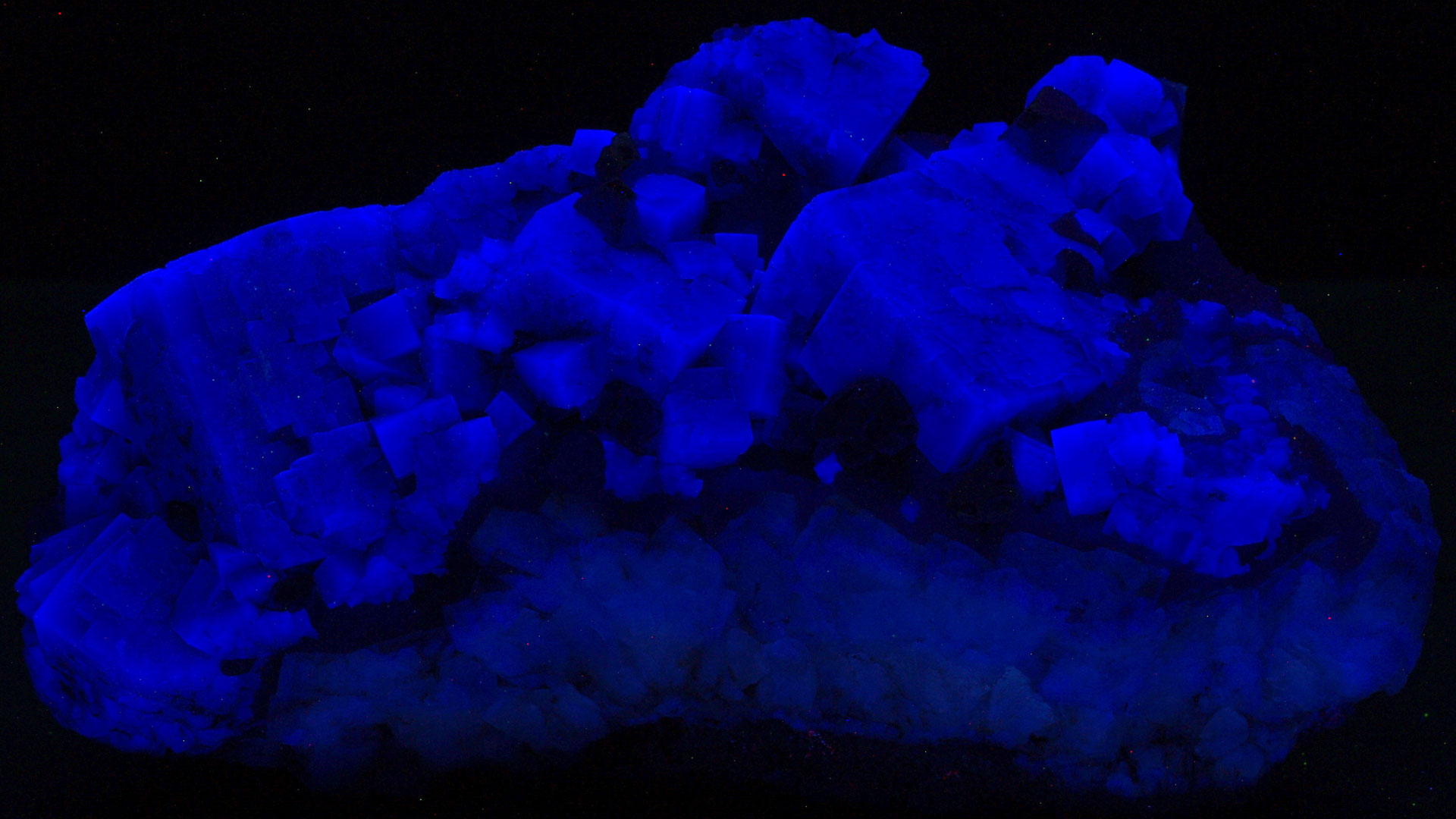 Mineral specimens from the Rogerley Mine in Frosterley, County Durham, England, are highly prized for their exceptional Fluorite crystals. These specimens are renowned for their striking apple-green color and sharp, well-formed cubic crystals, often perfectly transparent and sharply defined. A distinctive feature of Rogerley Fluorite is its strong daylight fluorescence, which reveals a vivid blue glow under shortwave UV light, making it particularly attractive to collectors. Crystals are typically found in clusters or as single, dramatic cubes on a matrix, and can range from small cabinet specimens to larger, museum-quality pieces. The combination of color, clarity, crystal form, and unique fluorescence makes Rogerley Mine Fluorite one of the most sought-after fluorescent minerals in the world.